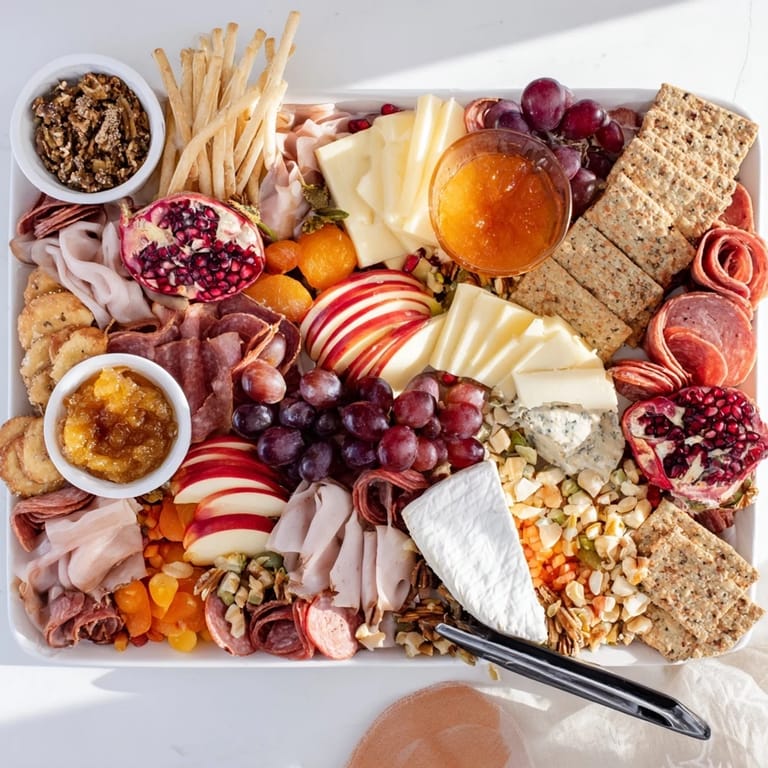 For a vegetarian board, replace meats with roasted squash or marinated mushrooms. Add seasonal cheeses such as smoked gouda or apple cider-washed cheese.