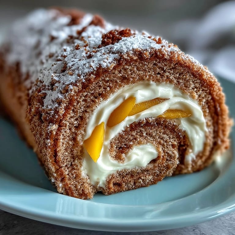 Pin The first time I encountered hojicha, it was steaming in a ceramic cup at a quiet tea house tucked between narrow Tokyo streets, and I was immediately drawn to its toasted, almost nutty warmth. Years later, I found myself wondering if that same comforting flavor could translate into something I could make at home, something that would fill my kitchen with that same gentle, roasted aroma. The answer came to me one quiet afternoon while scrolling through old recipe notes, and I realized a delicate sponge roll could become the perfect canvas for hojicha's subtle sophistication. Adding mango felt like painting with unexpected color, brightening the earthy tea without overshadowing it. This roll cake became my way of capturing that tea house moment whenever I needed it.