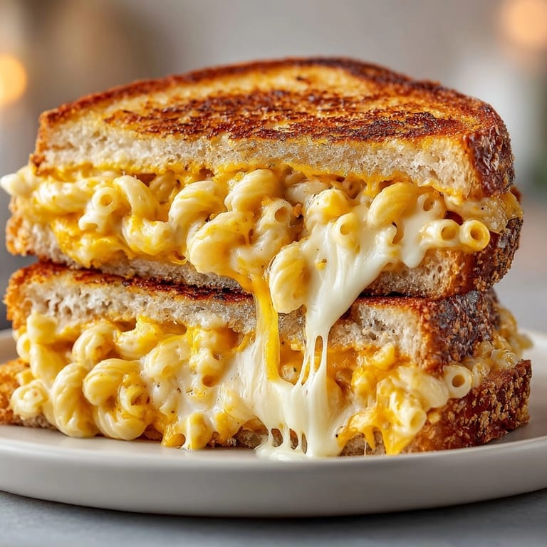 Pin This rich, melty Mac and Cheese Stuffed Grilled Cheese Sandwich ups the comfort factor in every way. Imagine gooey cheddar, creamy macaroni, and perfectly toasted bread with a crisp, golden exterior. This is for days when you want classic grilled cheese nostalgia with a bit more indulgence in every bite.