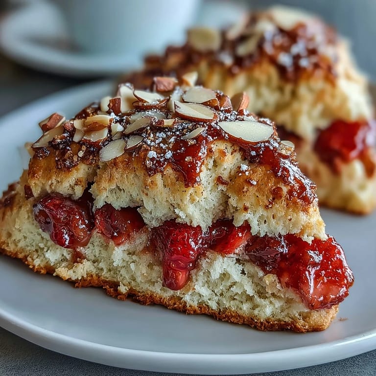 Pin These Strawberry Brown Butter Scones with Almond Slices are more than just a baked good—they're a celebration of simple, quality ingredients transformed into something truly memorable. The combination of nutty brown butter, sweet strawberries, and crunchy almonds creates a harmony of flavors that will make these scones a regular request in your kitchen. Whether you're an experienced baker or just beginning your baking journey, this medium-difficulty recipe rewards you with impressive results that look and taste like they came from a professional bakery.