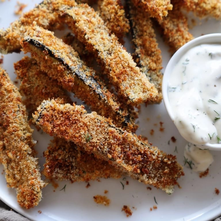 I first served these at a backyard cookout and expected leftovers but my friends kept asking for the recipe and the platter was empty before the burgers finished grilling. The combination of spicy coating and cool ranch became a must-make anytime eggplant shows up in my kitchen.