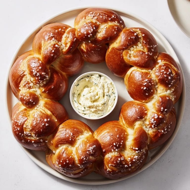Assemble the wreath ahead of time and bake just before serving to keep pretzels fresh and warm.