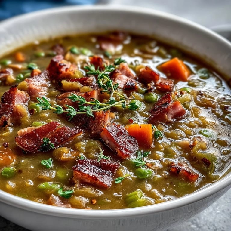I made this for my dad during his first winter living alone after retirement, and he called me mid-afternoon just to tell me the house smelled like home. That bowl became part of his weekly routine, and he started timing his grocery shopping so he'd never run out of split peas. It wasn't fancy, but it was the kind of meal that meant something without needing to be complicated.
